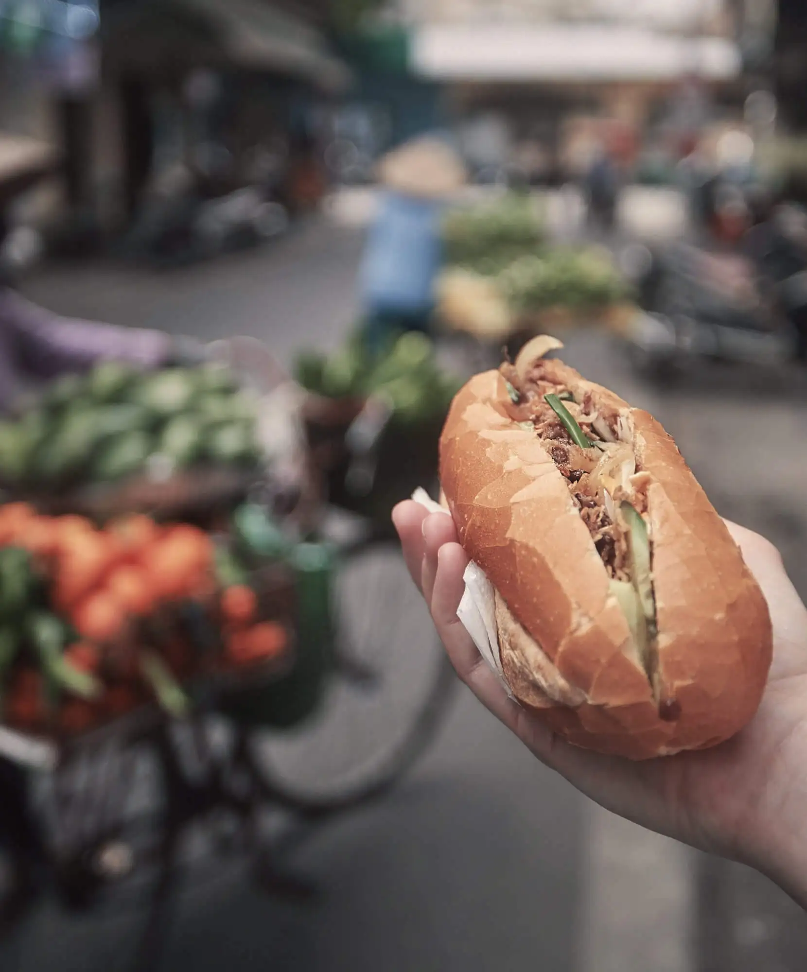 El banh mi es uno de los mejores ejemplos de mezcla cultural en Vietnam. Utiliza una baguette crujiente de origen francés, pero el relleno es completamente vietnamita.